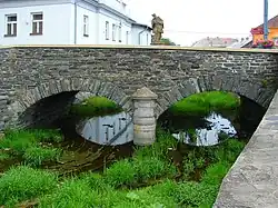 Notable is a Baroque stone bridge with a statue of Saint John of Nepomuk. Next to the bridge is a water mill, which houses the Slate Museum.[5]