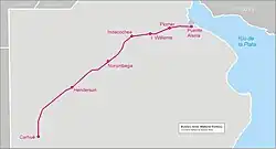 After the railway nationalisation in Argentina in 1948, the BAM became part of Belgrano Sur Line, the company closing as a result. Today services on the line are operated by the state-owned company Trenes Argentinos, the concessionary of Puente Alsina-Marinos del Crucero General Belgrano branch.[1]