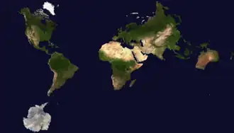 Following unsuccessful attempts to generate terrain using a Mercator projection, organizers opted for a modified version of the Dymaxion map projection. The alternative approach prioritized minimizing distortions in land masses, at the cost of highly distorted oceans.[6]