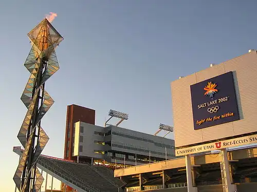 - Rice-Eccles Stadium - football stadium for the University of Utah; site of the Opening and Closing Ceremonies of the 2002 Winter Olympics; also the former home to the Major League Soccer team Real Salt Lake