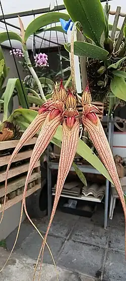 Bulbophyllum sanguineopunctatum is a species of orchid in the genus Bulbophyllum in section Cirrhopetalum.