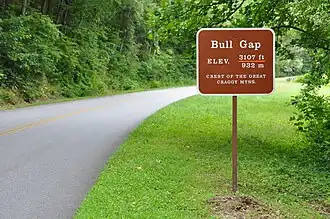 - ^ "Bull Gap Gap". Geographic Names Information System. United States Geological Survey, United States Department of the Interior. Retrieved July 22, 2014.