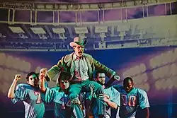 • March 15–30, 2014 – World premiere in the Ellen Stewart Theatre at La MaMa Experimental Theatre Club in New York. The performance was attended by former NFL players and Houston Oilers, Dan Pastorini and Lawrence Harris, and Bum Phillips' son and NFL coach, Wade Phillips. It was conducted by Peter Stopschinski, performed by American Modern Ensemble, and directed and designed by Luke Leonard. Dan Pastorini reacted, "Bum Phillips and opera don't belong in the same sentence ... And I sat there and I watched this thing unfold for two hours, and at the end of it I had tears coming down my cheeks," and Wade Phillips responded, "It certainly meant a lot to us. Meant a lot to me ... Not many people get a tribute to them in any way and this opera did it for us."[2]