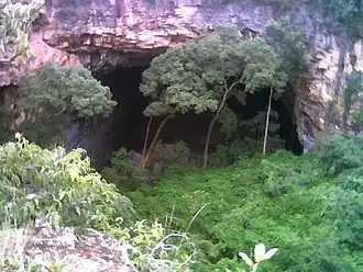 Buraco das Araras - Dolina dos Maracanas (BR-020) (English: Hole of the Macaws) is one of the largest quartzitic caves located in the State of Goiás, Brazil. It is located about 120 kilometres (75 mi) west of Brasília and 16 kilometres (9.9 mi) from the district of Bezerra, in the municipality of Formosa. It is considered one of the largest sinkholes (dolinas) in the world.