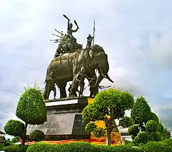 According to Thai tradition, Thado Dhamma Yaza and Maha Chakkraphat engaged in single elephant-combat. (The custom of the time was for two commanders/leaders of the same status to fight in single combat. It is unclear as to why the Siamese king would have accepted to face someone of lesser rank. If he did issue the challenge, he would have challenged his counterpart Tabinshwehti and accepted to face only Tabinshwehti.) The Thai narrative continues that Maha Chakkraphat's elephant panicked and gave flight, charging away from the enemy; Thado Dhamma Yaza swiftly gave chase. Fearing for the life of her husband, Queen Sri Suriyothai charged ahead to put her elephant between the King and the Viceroy, thereby blocking his pursuit.[30][32] The Viceroy then engaged the Queen in single combat, fatally cleaving her from shoulder to heart with his spear, also wounding her daughter—both mother and child met their deaths on the back of the same elephant.[5][7][32] It is said that the Viceroy did not know he was fighting a woman until his blow struck—as she fell dying her helmet came off, exposing her long hair. Prince Ramesuan and Prince Mahin then urged their elephants forward to fight the Viceroy, drove him and his remaining forces from the field, then carried the bodies of their mother and sister back to Ayutthaya. The Siamese king meanwhile rallied his army, and retreated in good order back towards the capital.[30][32] The Burmese chronicles however do not mention any instance of single combat (on elephant-back or otherwise) by the viceroy of Prome.[note 6]