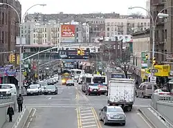 The Burnside Avenue station is an express station on the IRT Jerome Avenue Line of the New York City Subway. Located at the intersection of Burnside and Jerome Avenues in the Morris Heights and University Heights neighborhoods of the Bronx, it is served by the 4 train at all times. It also serves as a rush hour short turn northern terminal for select 4 trains from Crown Heights–Utica Avenue.[4]