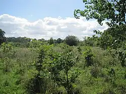 The fields are old London clay grassland, dominated by Yorkshire fog with some tufted hair-grass. Damper areas and Burtonhole Brook support a much more diverse flora.[2]