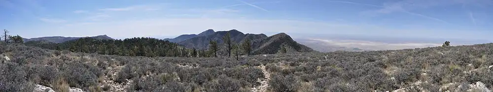 Bush Mountain can be accessed via trailheads at both Pine Springs (6.7 miles (10.8 km) one way) and Dog Canyon in Guadalupe Mountains National Park, and the Bush Mountain Trail passes over the summit of the mountain. The Bush Mountain Campground is located along the trail just below the southeast side of the summit, and the National Park Service has a radio repeater on the summit.[3]