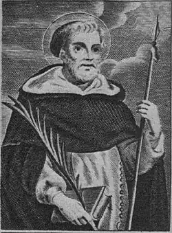 Around 1233, Buzád joined the Dominican Order, giving up his political career and forsaking all property. As a charter dated 14 February 1233 mentioned, he already lived in a monastery at Pest. Then his eldest son Buzád III inherited his main estate and centre Szabar.[17] According to tradition narrated by a contemporary chronicler Thomas of Cantimpré, not willing to leave the monastery, the invading Mongols killed Buzád before the altar in the middle of April 1241, shortly after the disastrous Battle of Mohi. Buzád was beatified by the Roman Catholic Church because of his martyrdom and self-sacrifice.[3] The narration of his martyrdom was preserved by Jesuit scholar and theologian Gábor Hevenesi at the end of the 17th century in his work Ungaricae Sanctitatis Indicia (1692).