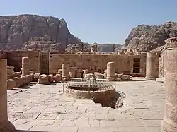 The Byzantine Church at Petra (also known as The Petra Church) is a prime example of monumental architecture in Byzantine Petra. It sits on elevated ground in the city center, north of the so-called Colonnaded Street.[1][2] It is one of three Byzantine churches on the hillside, the others two being the Ridge Church (or Red Church)[3] and the Blue Chapel, the 5th - 6th century chapel north of the main church, so called because it was fashioned with blue Egyptian granite.[4]