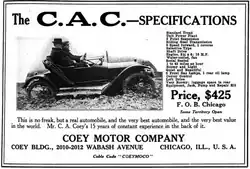 C-A-C is a cycle car that was produced in Chicago, Illinois from 1914 to 1916. The open roadster cost $425, while for $650 the buyer got a closed-body cycle car. The engine was a water-cooled 12 hp four-cylinder which ran on gas.[1]