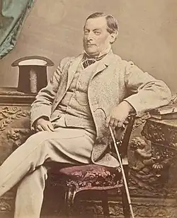 He began by dealing in cattle in 1851, which proved to be the most lucrative business he could have chosen, as it was just before the Victorian gold rush (within 3 years the price of a fat bullock rose from £2 10/ to £15 or £17).[4] He purchased drafts of cattle wherever he could buy them up, and drove them across to Victoria, where the diggers bought them up at high prices. He was an excellent horseman, and spent most of his time in the saddle at this period, being obliged to make many long and rapid journeys to keep up the supply of stock. He extended his operations to supplying the Adelaide market and droving mobs of cattle and sheep into Victoria, in some of the largest droving operations in the history of either State.[2]