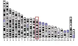 C12orf24 (Chromosome 12, open reading frame 24) is a gene in humans (Homo sapiens) that encodes a protein known as FAM216A.[5] This gene is primarily expressed in the testis and brain, but has constitutive expression in 25 other tissues.[5][6] FAM216A is an intracellular protein that has been predicted to reside within the nucleus of cells.[7] The exact function of C12orf24 is unknown. FAM216A is highly expressed in Sertoli cells of the testis as well as different stage spermatids.[8]