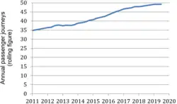 - ^ "ORR passenger numbers by train operating company". ORR. Archived from the original on 30 November 2020. Retrieved 9 March 2016.