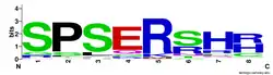 The conservation analysis of the repeat shows the initial S-P-S is highly conserved, possibly for phosphorylation(S) and structure(P), and the R is almost completely conserved, mutating to a Lysine in some orthologs,[32] implying the positive charge is necessary for the purpose of the repeat.