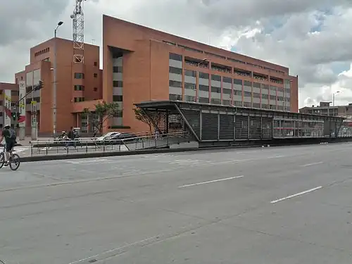 The station is located close to downtown Bogotá, more specifically on the Troncal Calle 13 between Carreras 32 and 33.