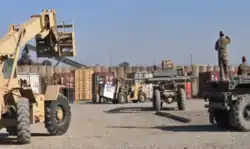The 593rd Sustainment Brigade (SB) was the first headquarters to command and control the Army's CENTCOM Materiel Recovery Element (CMRE). The 593d SB, led by Colonel Douglas McBride and Command Sergeant Major Eric Taylor, comprising 3,371 active duty, Reserve and National Guard soldiers, sailors, airmen, marines, Department of Defense civilians, and contractors, conducted over 110 geographically dispersed general engineering construction missions in remote and urban environments covering an area larger than Texas (250,000 square miles). The 593d SB processed 17,000 materiel release orders, which constituted the shipping of over 9,000 twenty foot container equivalent units (TEU) of materiel out of Afghanistan, reestablishing positive accountability of over $22 million worth of equipment in the Army supply system thus far.