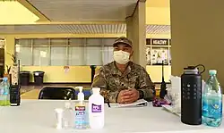 ![]() Guam National Guardsmen dropping a COVID-19 test into a bag for transport to a testing lab, April 22 | |
