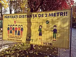 On 22 April, President Iohannis issued a press release, stating the government's intention to adopt, by mid-May, official legislation requiring citizens to wear surgical masks in public.[90] That same day, Timișoara, Romania's third largest city, made the use of both facial masks and protection gloves mandatory in enclosed public spaces, including transportation.[91] This decision came a week after Constanța, a major urban centre and one of the country's main tourist destinations, took similar measures on 15 April.[92]
