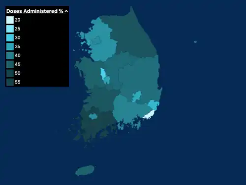 - ^ South Korea COVID-19 Vaccine Tracker: Provinces Map Archived 29 June 2021 at the Wayback Machine. By George Karabassis Archived 14 April 2022 at the Wayback Machine.