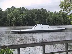 A 3/8 scale 63-foot (19 m) replica of Albemarle has been at anchor near the Port O' Plymouth Museum in Plymouth, North Carolina since April 2002. The replica is self-powered and capable of sailing on the river. Each year, the replica takes to the water during Living History Weekend in the last weekend of April.[4][5]
