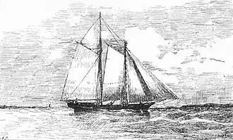 Watson, who had immigrated from Great Britain several years before, had originally enlisted in the Confederate Army as a sergeant before being wounded at the Second Battle of Corinth,[1] and discharged due to his injuries. Hiring out a schooner, commissioned as Rob Roy, Watson would bring desperately needed supplies into blockaded southern ports, specifically Galveston, Texas before selling the ship after financial disagreements with business associates. She was finally chased ashore and run aground by the Union vessel Fox and the USS Stars and Stripes on 2 March 1865 at Deadmans Bay where her crew set her on fire. Watson would later write about his wartime naval career in an autobiography The Civil War Adventures of a Blockade Runner in 1892.[2]