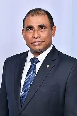 - ^ "Ibrahim Mohamed Solih sworn in as the 7th President of the Maldives". The President's Office. 17 November 2018. Retrieved 15 November 2024.