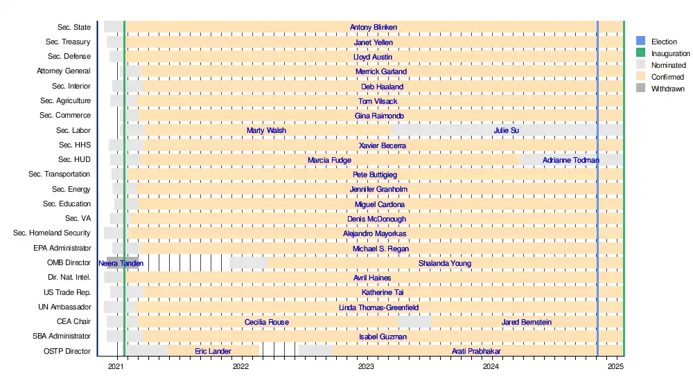 - ^ Jaffe, Alexandra (March 2, 2021). "Biden's Cabinet half-empty after slow start in confirmations". Associated Press. Retrieved March 2, 2021.