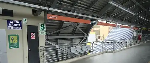 Cabitos is a Lima and Callao Metro station on Line 1. The station is located between Ayacucho and Angamos. It was opened on 11 July 2011 as part of the extension of the line from Atocongo to Miguel Grau.[1] The full revenue service started on 3 January 2012.[2][3]
