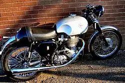 Café racers were particularly associated with the urban rocker or "ton-up boys" youth subculture, where the bikes were used for short, quick rides between popular cafés, such as London's Ace Cafe on the North Circular ring road, and Watford's Busy Bee café.[3][4][2][5][6] In post-war Britain, car ownership was still uncommon, but as rationing and austerity diminished, by the late 1950s young people could for the first time afford a motorcycle.[7] Previously, motorcycles (often with voluminous sidecars) provided family transport, but the growing economy enabled such families to afford a car and dispense with a motorcycle at last. Many of these motorcycles were second hand, or retired military motorcycles which were no longer eligible for service. They were often small-mid sized displacement motors with bolt on accessories and fairings attached to the body for military use. Young people were eager to buy such cast-off motorcycles and modify them into café racers, which for them represented speed, status, and rebellion, rather than mere inability to afford a car.[8]