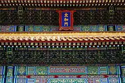 Caihua (Chinese: 彩畫; pinyin: cǎihuà), or "colour painting", is the traditional Chinese decorative painting or polychrome used for architecture and one of the most notable and important features of historical Chinese architecture. It held a significant artistic and practical role within the development of East-Asian architecture, as Caihua served not only decoration but also protection of the predominantly wooden architecture from various seasonal elements and hid the imperfections of the wood itself. The use of different colours or paintings would be according to the particular building functions and local regional customs, as well as historical periods. The choice of colours and symbology are based on traditional Chinese philosophies of the Five Elements and other ritualistic principles. [1][2] The Caihua is often separated into three layer structures; timber or lacquer layer, plaster layer, and pigment layer.