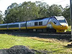 Following from the successful introduction of the two electric tilting trains between Brisbane and Rockhampton in 1998, the City of Cairns and City of Townsville diesel tilt trains were introduced on 15 June 2003 between Brisbane and Cairns.[1] As only a third of the North Coast railway line from Brisbane to Cairns is electrified, the two diesel trains were required to further major destinations such as Townsville and Cairns.