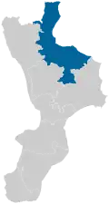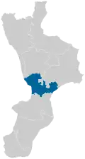 Calabria is one of the 29 constituencies (Italian: circoscrizioni) represented in the Chamber of Deputies, the lower house of the Italian parliament.[2] The constituency currently elects 13 deputies. Its boundaries correspond to those of the Italian region of Calabria. The electoral system uses a parallel voting system, which act as a mixed system, with 3⁄8 of seats allocated using a first-past-the-post electoral system and 5⁄8 using a proportional method, with one round of voting.[3]