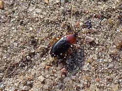 Calathus melanocephalus is a species of blackish-red coloured ground beetle from the Platyninae subfamily that can be found everywhere in Europe except for Monaco, San Marino, Vatican City and various European, Asian and African islands.[1] The species is mostly black coloured and have red thorax. It is found in bare, sandy soil, under stones, and in leaf litter. Its flying time is from April to September.[2]