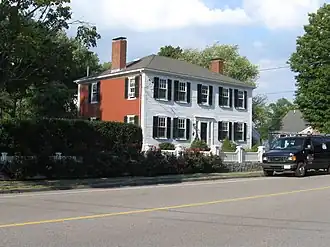 The Caleb Lothrop House is a historic house in Cohasset, Massachusetts. The two-story hip-roof wood-frame house was built in 1821, and is the only brick-ended houses in the town. The house is a well-preserved example of Federal styling, featuring a center entry that is flanked by sidelight windows and pilasters. The house served for a time as the headquarters of the Cohasset Historical Society. Calep Lothrop, its builder, was the grandson of a Revolutionary War militia leader, and was descended from one of the area's first settlers.[2]