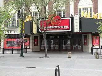 In April 2006, the Flames announced that they would be opening a hybrid restaurant, bar and entertainment facility in downtown Calgary on Stephen Avenue. In announcing the venture, Flames' President and CEO Ken King stated: "While hockey remains our core competency, we are constantly seeking new opportunities in which to grow the Flames brand and allow our fans greater opportunities to enjoy hockey. We believe establishing a location outside of the Pengrowth Saddledome to share food, fun and hockey will bring our fans even closer to the team."[130] One year later, in April 2007, Flames Central opened to the public.[131] In 2017, the facility reverted to its original name of The Palace Theatre.[132]
