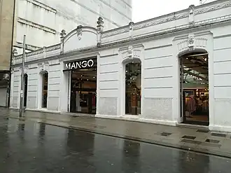 At number 8 of the street is the art nouveau Gran Garaje building. Built in 1915, it is one of the few remaining examples of art nouveau buildings in the city. It is remarkable for the white colour of its façade and its decoration. It currently houses a shop of the Mango clothing company.[9]