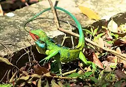 Calotes grandisquamis, the large-scaled forest lizard, is an arboreal, diurnal, insectivorous agamid lizard found in the evergreen rainforests of the Western Ghats of India; distributed from Agumbe to Agasthyamalai Hills.