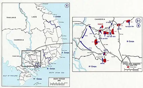 - ^ a b c d e f g h i j k l m n o p q r s t u v w x y z aa ab ac ad ae af ag ah ai aj ak al am an ao ap aq ar as at au av aw ax ay Tran, Dinh Tho (1979). The Cambodian Incursion (PDF). United States Army Center of Military History. ISBN 9781981025251. Archived (PDF) from the original on 31 August 2021.