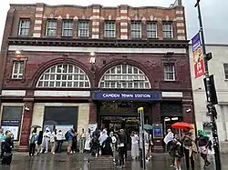 Camden Town is a London Underground station in Camden Town, London.[7] It is on the Northern line as well as a major junction for the line, as it is where the Edgware and High Barnet branches merge from the north, and is also where they split to the south into the Bank and Charing Cross branches for the journey through Central London. It is particularly busy with visitors to the Camden markets at weekends, and, until 2019, was exit-only on Sundays to prevent overcrowding.
