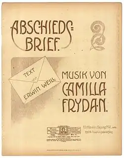 - ^ a b c d e f g h Schwab, Andrea (June 2012). "Camilla Frydan — 1887-1949, Pianistin, Sängerin, Komponistin, Musikverlegerin" (in German). Illustrierte Neue Welt. p. 10. Retrieved 27 January 2020.