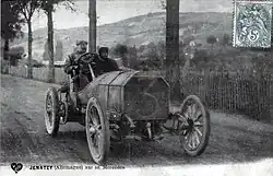 Jenatzy won the 1903 Gordon Bennet Cup in Athy, Ireland, at the wheel of a Mercedes.[4] Auto racing was a deadly sport at the time and at some point Jenatzy predicted he would die in a Mercedes.