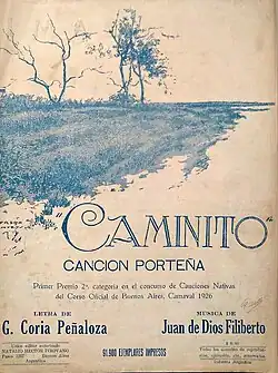 "Caminito" is a tango with music composed in 1926 by Juan de Dios Filiberto (music) and lyrics by Gabino Coria Peñaloza (lyrics).[1] It was initially recorded by Carlos Gardel but gained popularity through a performance by Ignacio Corsini.[2]