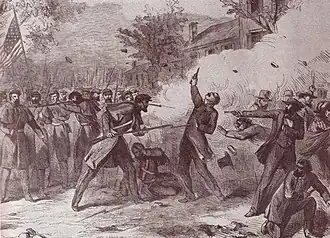Lyon suspected the Camp Jackson forces of conspiring to attack the arsenal. His suspicions were confirmed by personal investigation after he visited Camp Jackson, allegedly disguised as an older woman.[4] On May 10, Lyon marched on Camp Jackson with about 6,000 Missouri Volunteers and U.S. Regulars. Lyon forced the surrender of the militia, taking 669 prisoners.