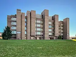 Stony Brook University is the largest residential public school in the state of New York, with nearly 10,000 students choosing to live on campus.[102] While the vast majority of housing is located on Stony Brook's West Campus, residential options are available at the East Campus and Stony Brook Southampton for undergraduate students, graduate students and their families. First-year students are divided into residential communities based on a system of "Undergraduate Colleges" that bring together students of similar interests.[103] In the 1960s, the Stony Brook University administration decided to name its dormitory buildings after the theme of "Great Deceased New Yorkers."[104]