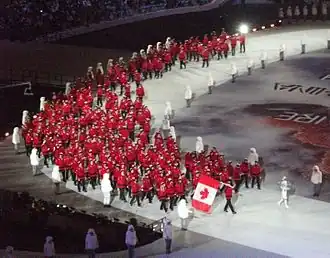 | Flag bearers | Hayley Wickenheiser (opening ceremony)[1][2] Kaillie Humphries and Heather Moyse (closing ceremony)[3][4] |