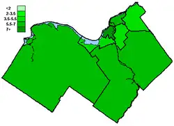 | Green | 23,536 | 5.6 | 26,854 | 6.0 | 36,683 | 8.5 | +0.4 | +2.5 | |