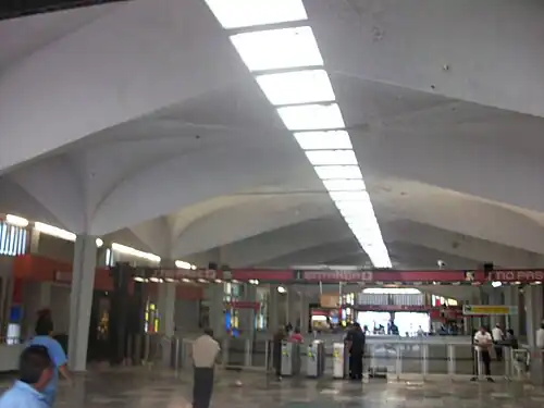 This station has the only "Lost and Found" office in the entire Metro system. It displays the architecture of Félix Candela, who designed the Candelaria station and many buildings in Mexico, such as the San Lázaro metro station and the Palacio de los Deportes, which served as a venue during the 1968 Summer Olympics.[8]