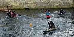 | Equipment | Water polo ball, buoyancy aid, helmet and face guard, goals, canoe polo kayak, paddle, spray deck |