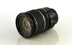 The Canon EF-S 17–55mm f/2.8 IS USM is a standard zoom lens for Canon digital single-lens reflex cameras with an EF-S lens mount. The field of view has a 35 mm equivalent focal length of 27–88mm.
